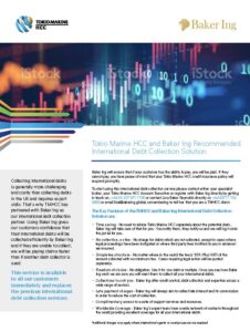 We are delighted to work ever more closely with our friends at Tokio Marine HCC, supporting the company’s global clientele with all their international debt recovery requirements. Tokio Marine HCC is a leading specialty insurance group transacting business in 180 countries and underwriting more than 100 classes of specialty insurance. Our integrated service model ensures seamless delivery of Baker Ing’s AR expertise to complement Tokio Marine HCC‘s market-leading insurance offering.