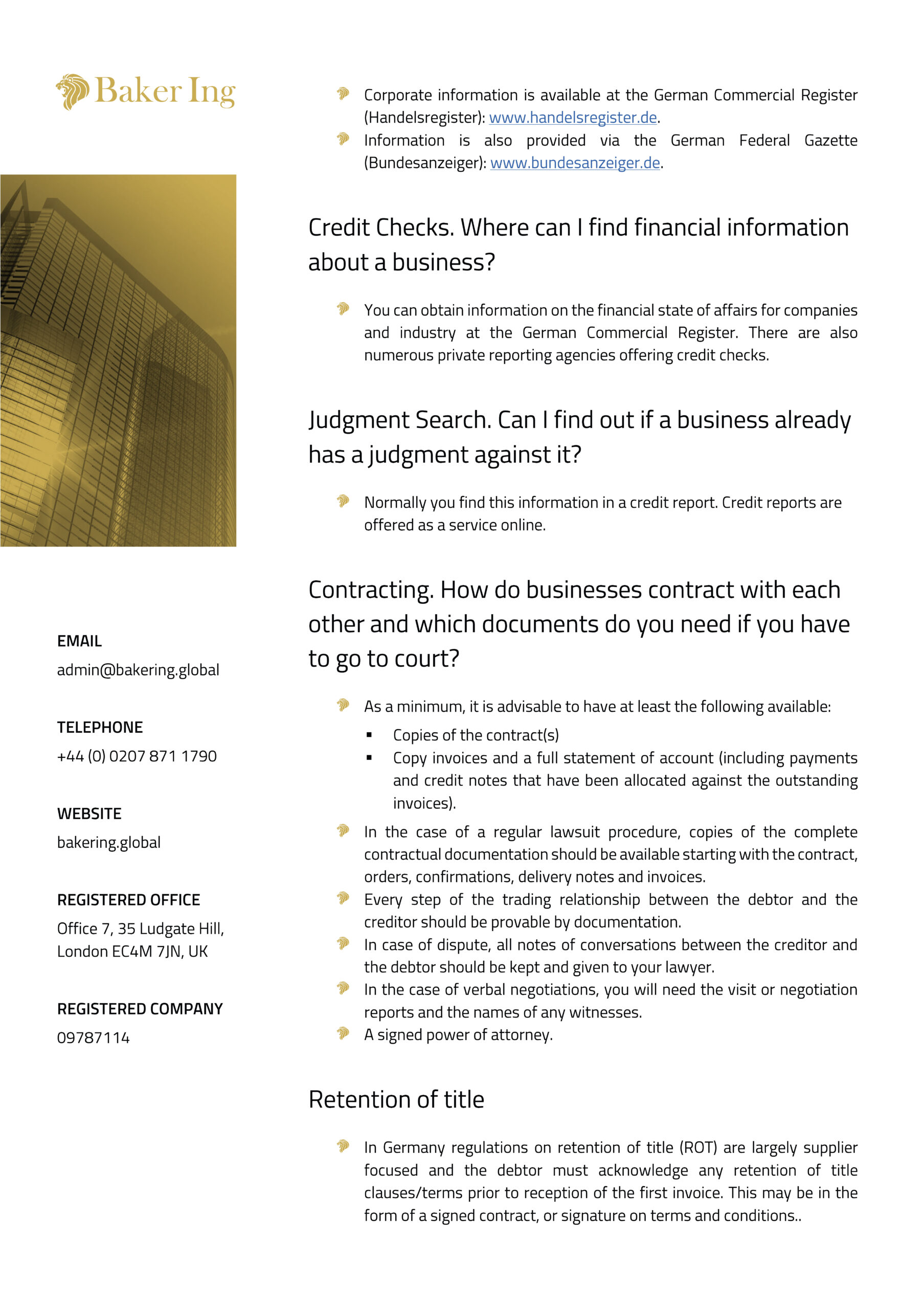 This is a succinct report with all of the key facts Credit Managers need to know about Germany.